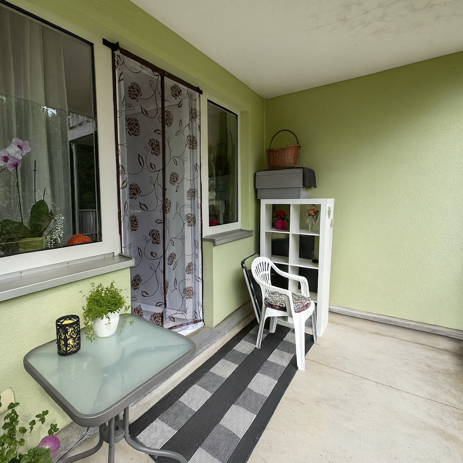 Die Wohnung bietet auf über 65m² eine durchdachte Raumaufteilung und ein angenehmes Wohnambiente. Dies umfasst einen einladenden Flur mit Platz für eine Garderobe, eine Küche mit bestehender Einbauküche, ein großzügiges Wohnzimmer mit integriertem Essbereich und Zugang zum Balkon mit Blick ins Grüne sowie ein großes, hell gefliestes Tageslichtbad mit Dusche, Badewanne und WC. Das ruhige Schlafzimmer und die praktische Abstellkammer runden das Raumangebot ab.